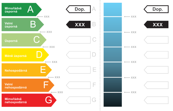 Tzv. Energetický štítek – je součástí PENB, jedná se o grafické znázornění energetické náročnosti budovy.